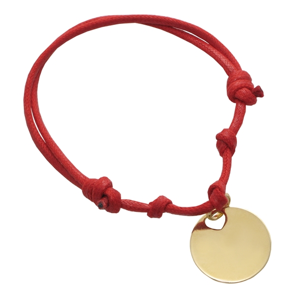 Armbånd i bomuld med vedhæng i forgyldt sølv. Gravering gratis!