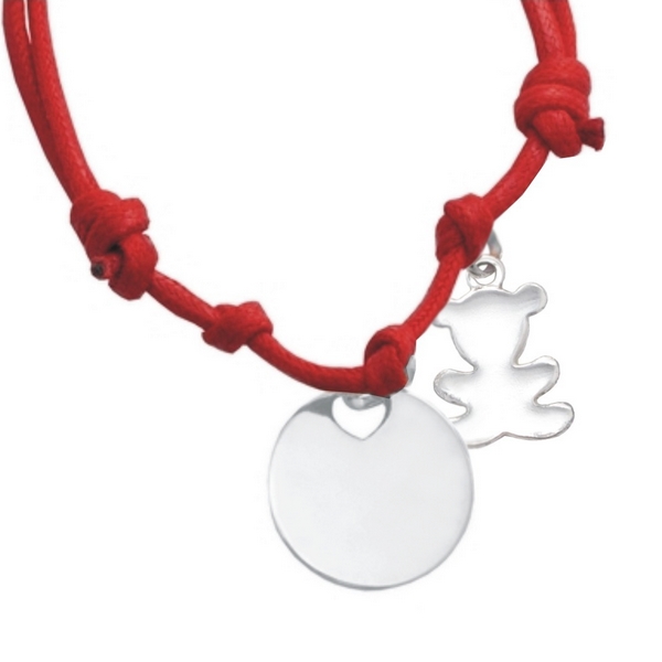 Bamse – Arambånd i bomuld med vedhæng i sølv. Gravering gratis!