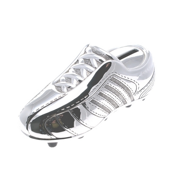 Fodboldsko – Sparebøsse i sølvplet med gravering gratis!