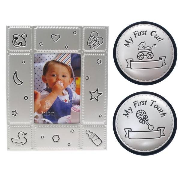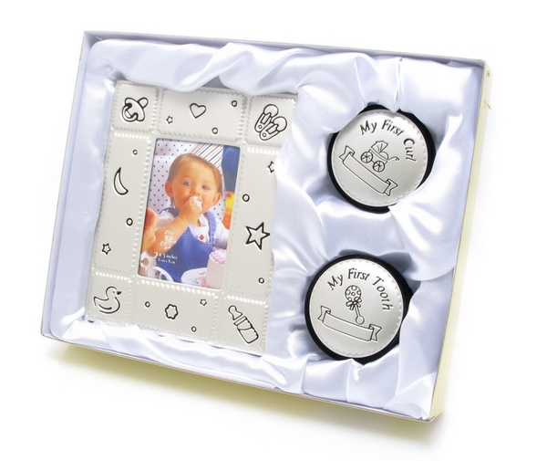 Fotoramme første tand, hårlok æske med gravering gratis!