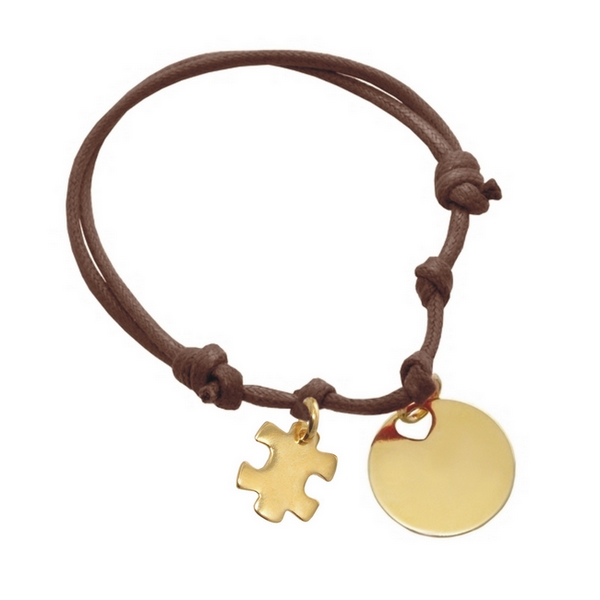 Puzzle Armbånd i bomuld med vedhæng i forgyldt sølv. Gravering gratis!