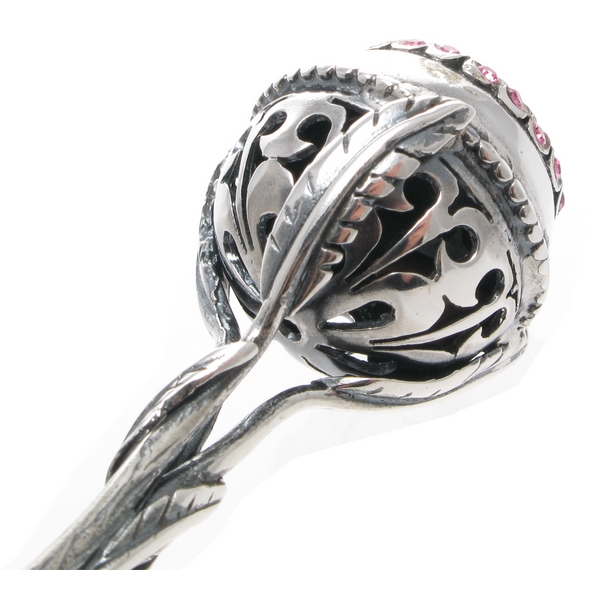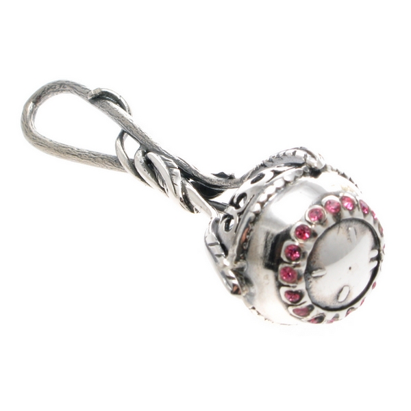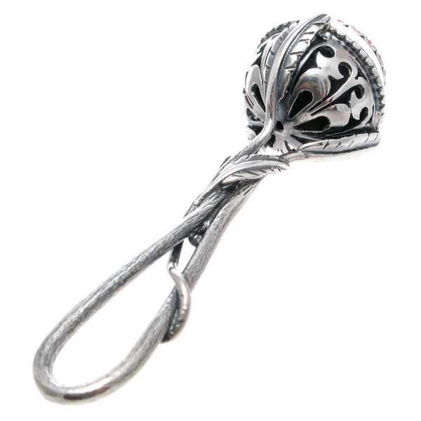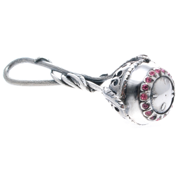Sølv rangle (925) – lyserøde krystaller. Gravering gratis!