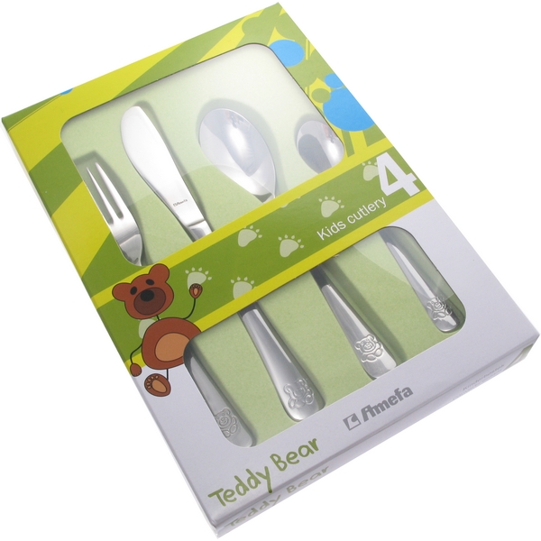 Teddy Bear AMEFA – 4 dele. Dåbsgaver: Børnebestik / Dåbsbestik med gravering gratis!