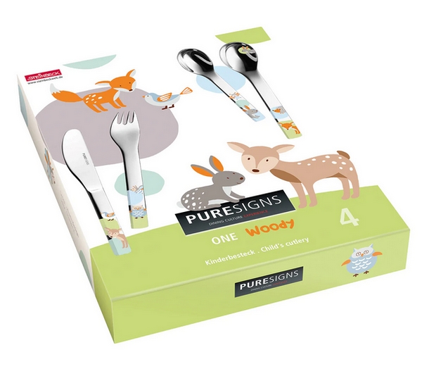 Hvor ræv og kanin siger god appetit! Skovdyr og pastelfarver: denne kombination er trendy og uimodståelig. Woody fokuserer på dyr med charme og inspirerer med børnesæt til kulinariske opdagelsesrejser. Kærligt dekoreret i himmelblå, lilla, turkis og lysegrønt opfordrer ugler, ræve, pindsvin, kaniner og skovbier til muntre bordscener og er absolut velegnet til hverdagsbrug i enhver form og lige velegnet til drenge og piger.