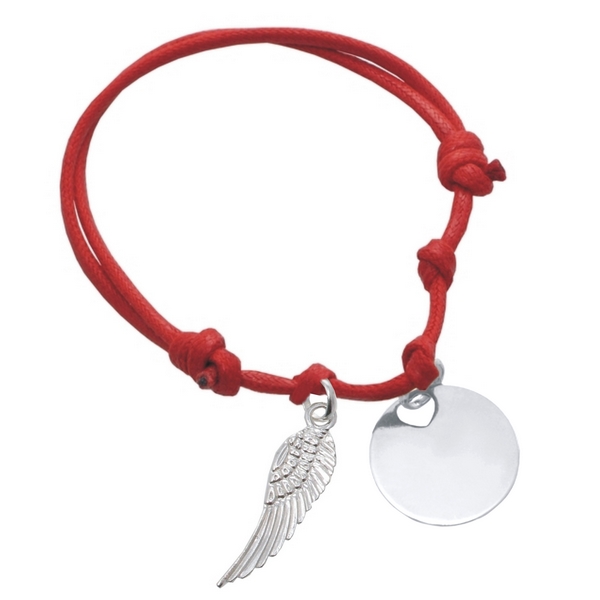 Armbåndet er udført med farvet tråd og sølvelement. Armbånd i bomuld med vedhæng i sølv med blank overflade. Armbånd med navn Armbånd til børn med gravering gratis.