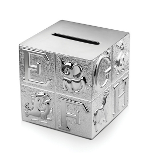 Sparebøsse “A B C” i sølvplet med gravering gratis!